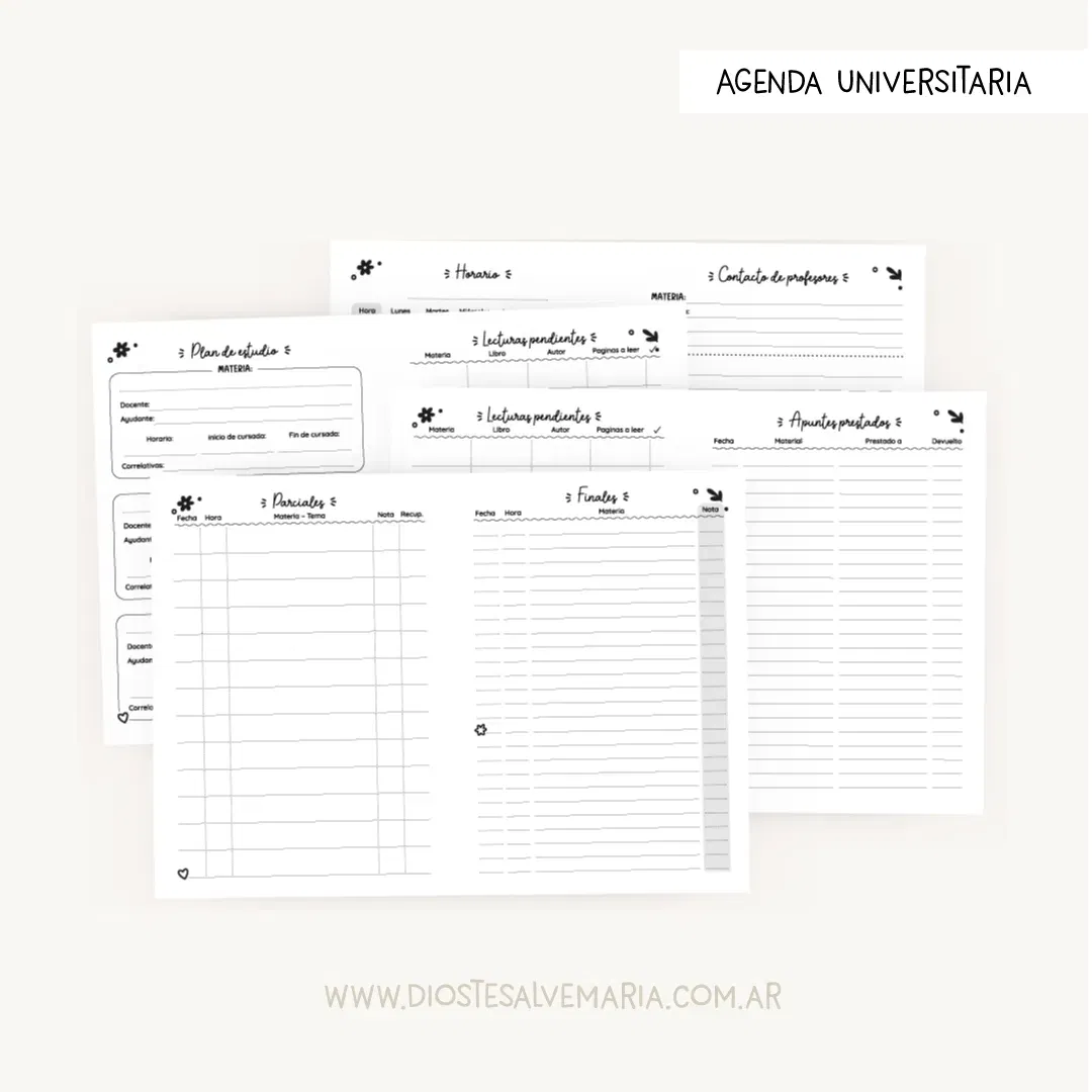 – Hojas de horarios, contacto de profesores, plan de estudio