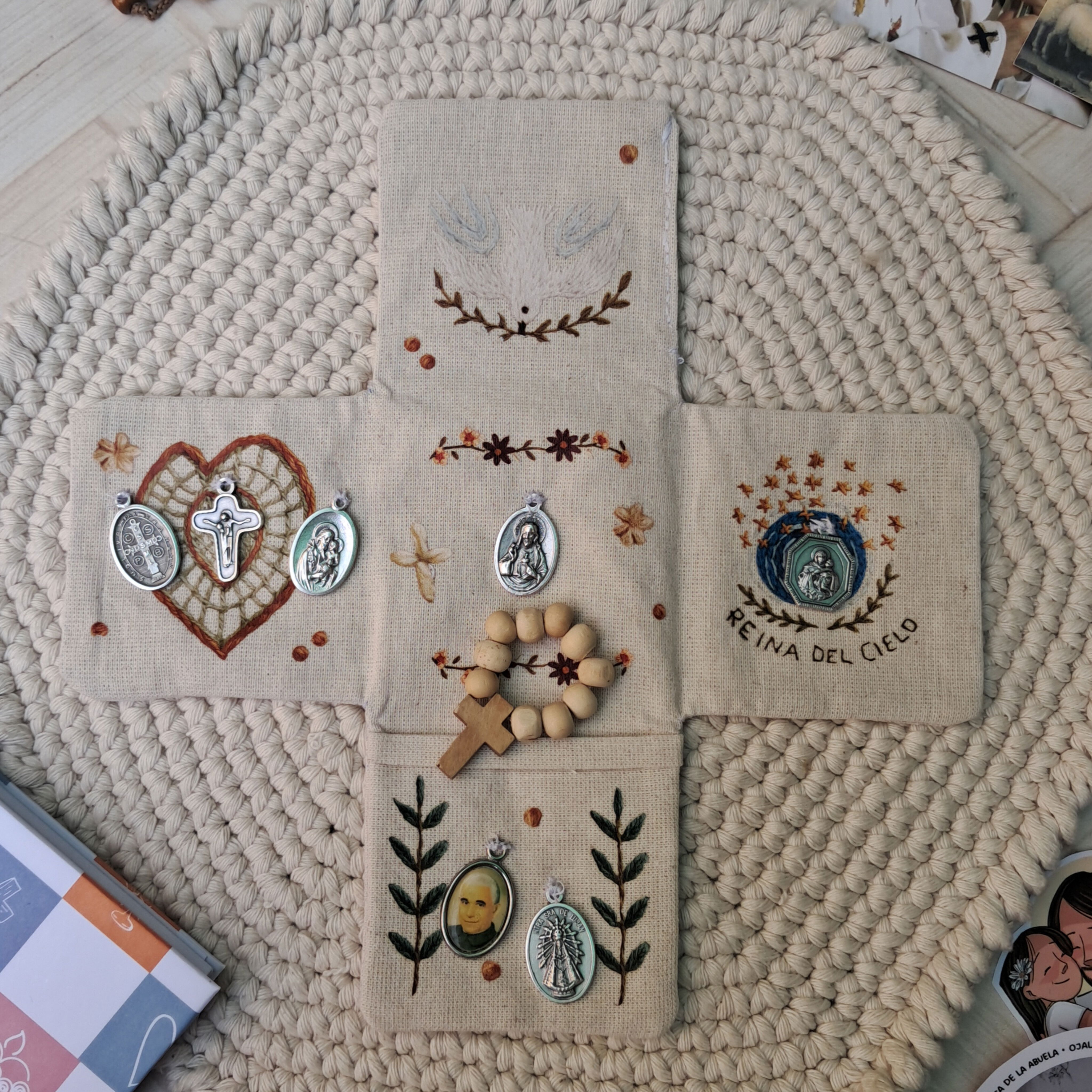 Podés personalizarlo eligiendo 5 medallas, para que tu oratorio refleje lo que tu corazón más necesita: confianza, esperanza, consuelo, fe, o gratitud.
