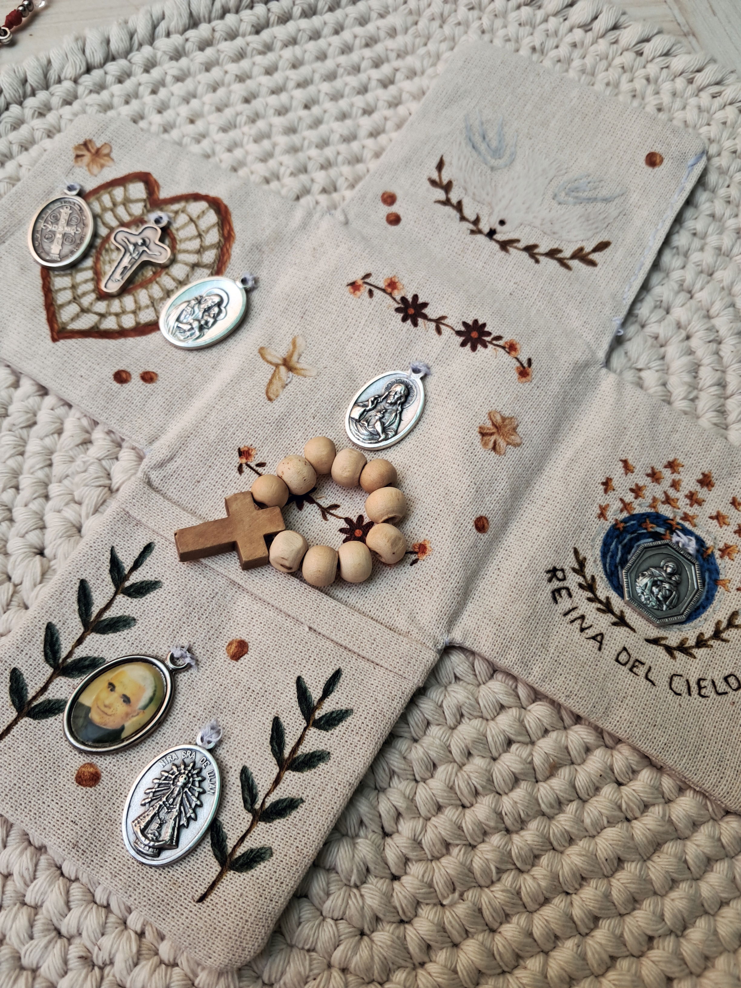 Medallas: podés elegir 5 medallas, según lo que tu corazón necesite (Virgen María, San José, Sagrado Corazón, Jesús Misericordioso, Ángel de la Guarda, entre otros).