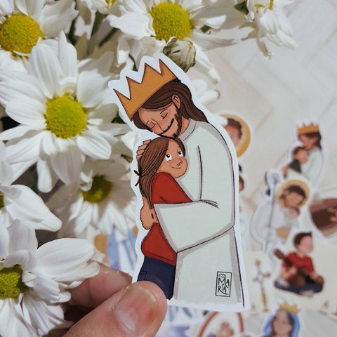 Sticker Cristo Rey con Niña