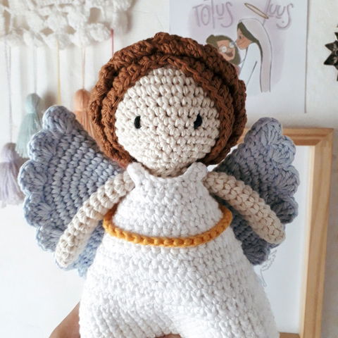 Mide 24 cm podes elegir el color de las Alas y el color de la túnica.